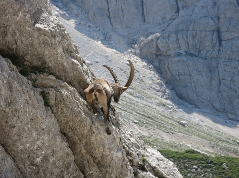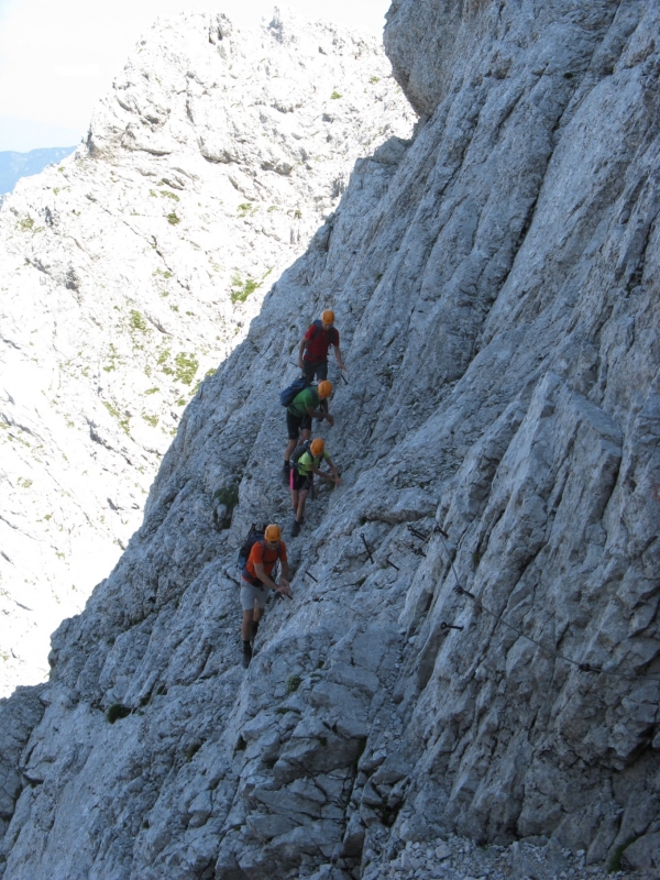 Po severnih policah Prisojnika proti vrhu |