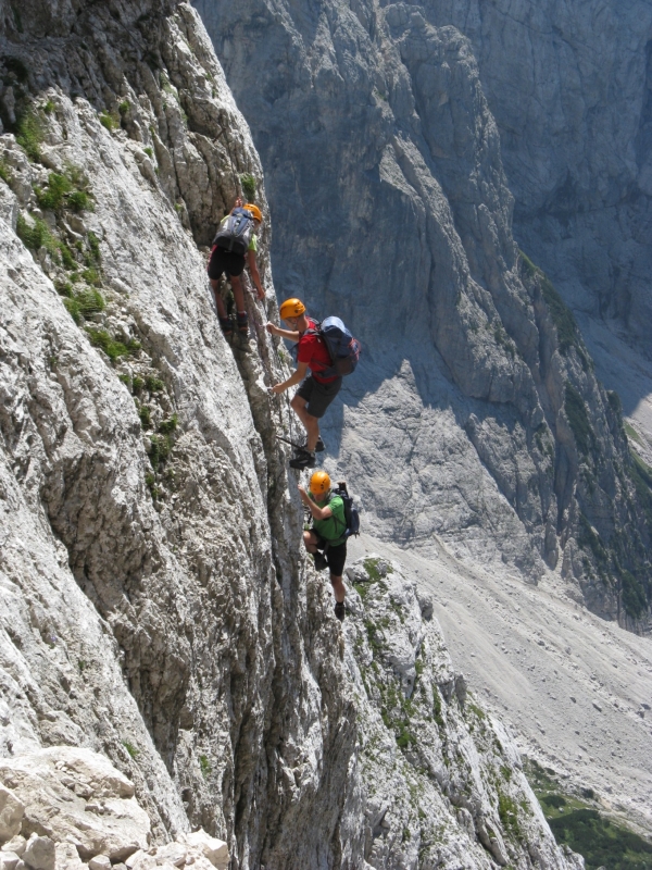 alpinistična čelada. Priporočam pa tudi pohodne palice