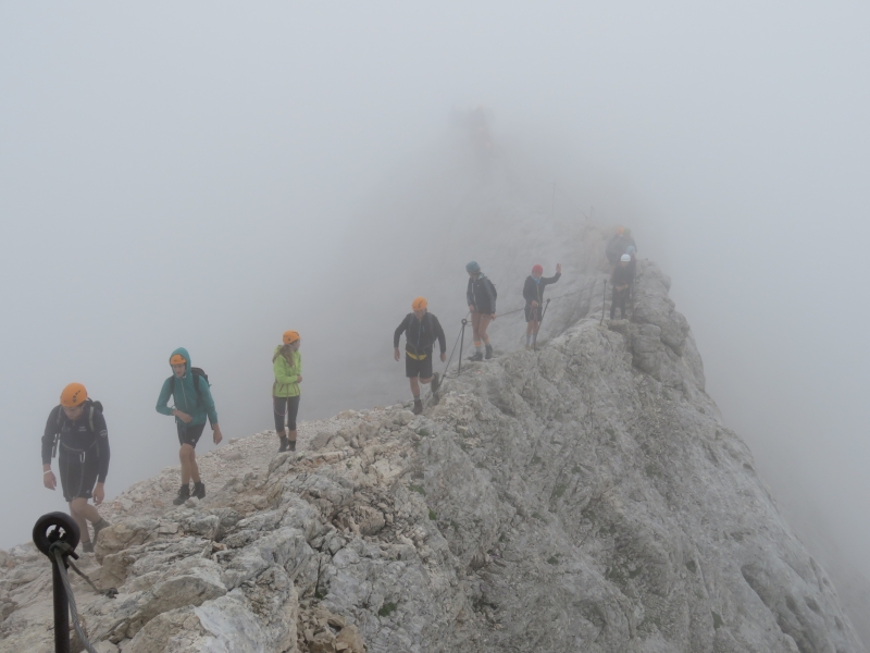 V megli po grebenu med Malim in Velikim Triglavom |