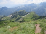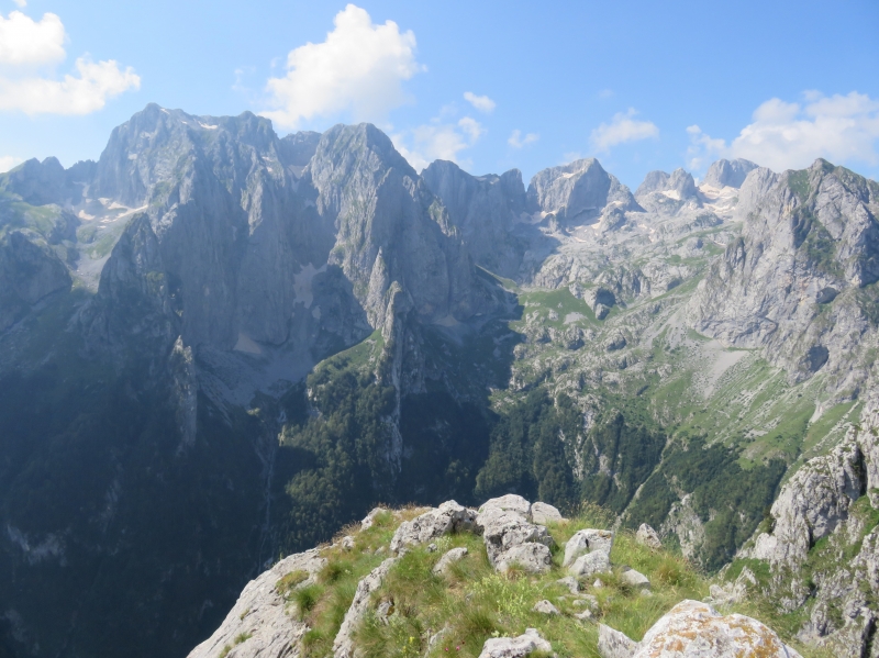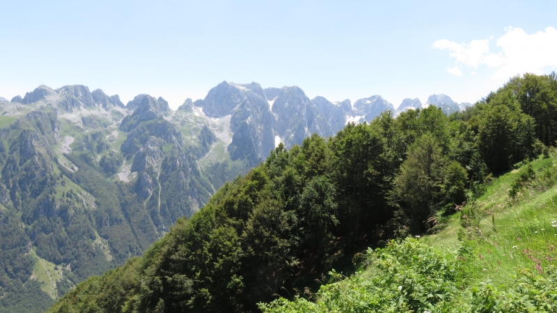 Maja e vojusit (Vojuša - 2210 m) zapira dolino Grbaje. Meja med Albanijo in ÄŒrno goro poteka nad travnatim delom |