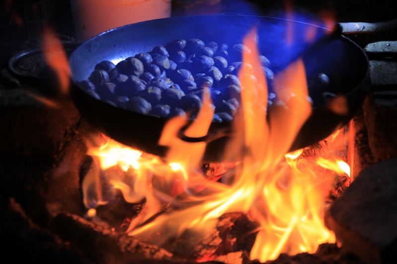 - na pikniku bo pijača, kostanji in klobase na palici