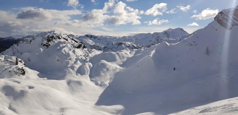 1. dan: Smučišče Vogel - Dom na Komni: 6 h, 14 km, 930 m vzponov, 950 m spustov