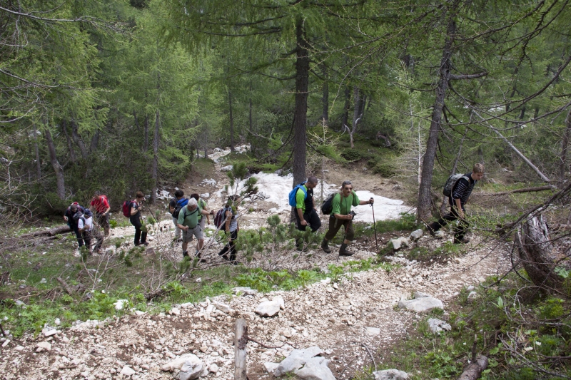 Po dokaj strmi poti proti planini pri Jezeru |