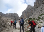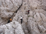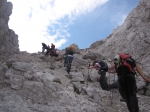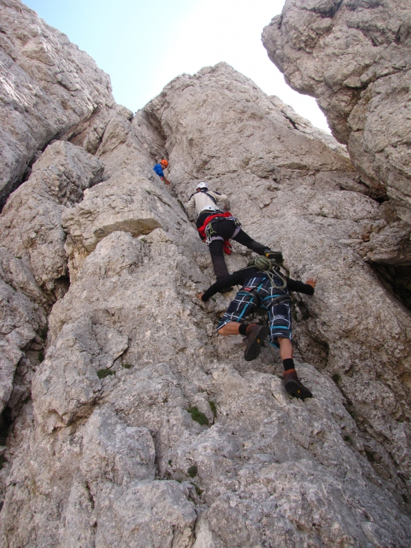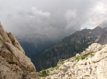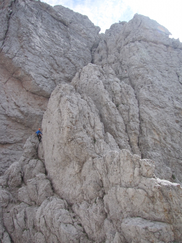 padajo v dolino s strmimi, rdeče-rjavo obarvanimi stenami. Grebeni so nažagani, škrbine globoko zarezane.