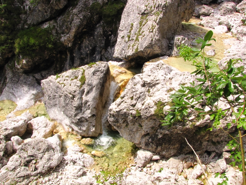 izmed velikanov Julijcev. Pač pa je tod okoli vse prikupno in ljubko oblikovano. Čar Bele vode je v intimnem,