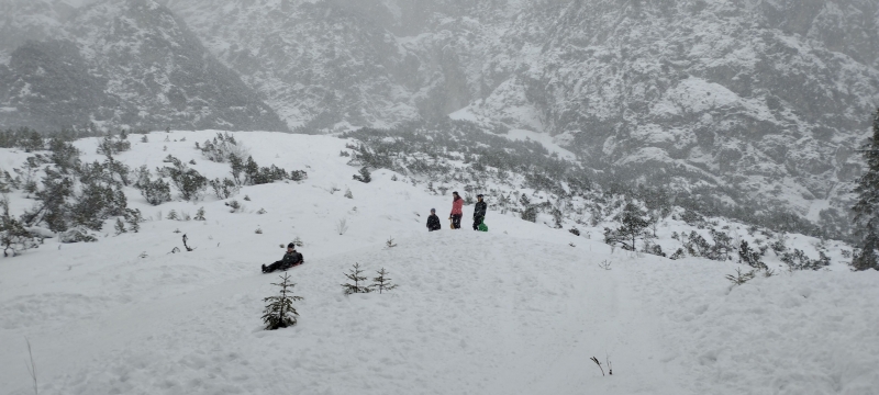 Oprema: vremenu primerna oblačila in visoka pohodna obutev, gamaše ali hlače, ki preprečijo vdor snega v čevlje